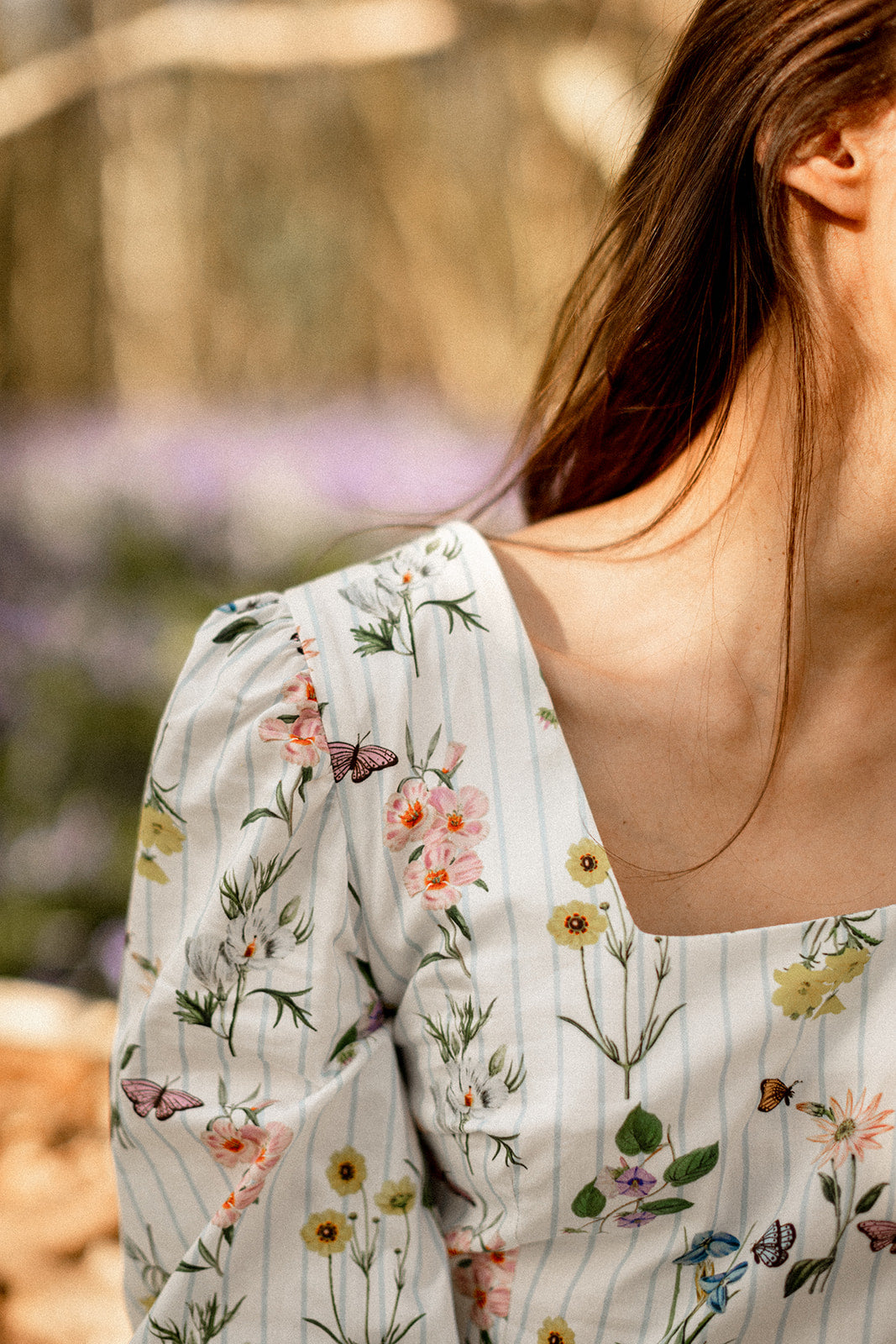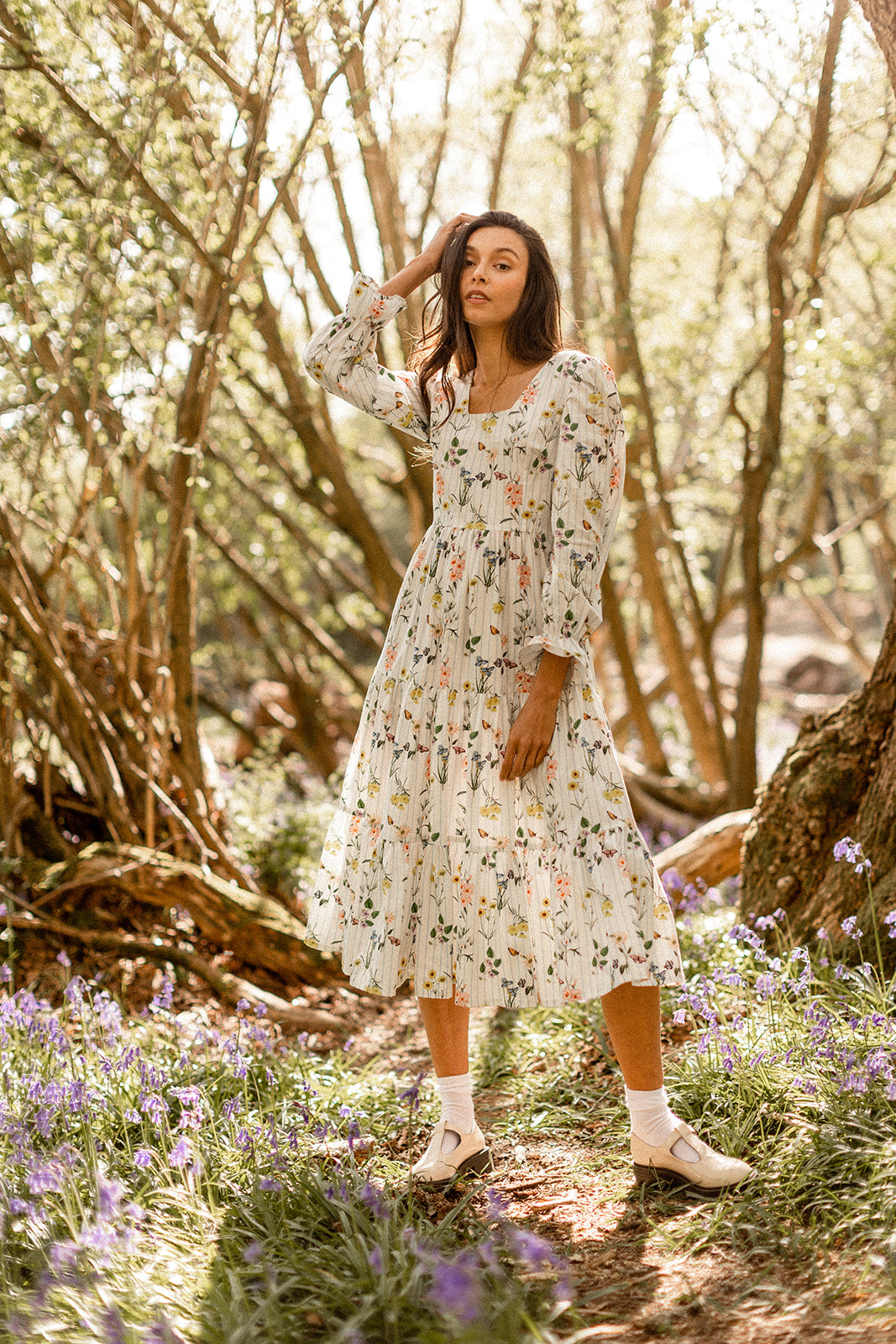 Ethically made in the UK by a small female run studio in the North East, ensuring the garments workers are paid and treated fairly. This dress is made with sustainability in mind and everything I do at My Cariad is with people and planet in mind