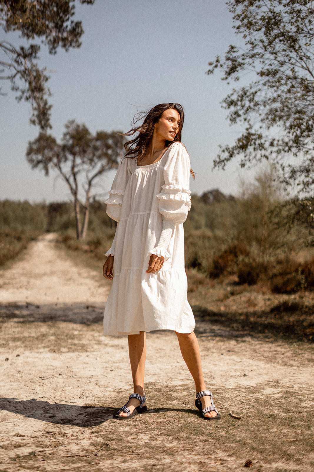 You’re channelling a victorian child. no, you’re embodying a 70s beach hippy. wait that’s not it. you’re rocking your Grandma’s nighty. look, we don’t know why it works but it does. the sleeves! the silhouette! the shirring! the sheer audacity! Yes. Please. Madame. we’ll be wearing it all summer long and we will not be taking questions at this time