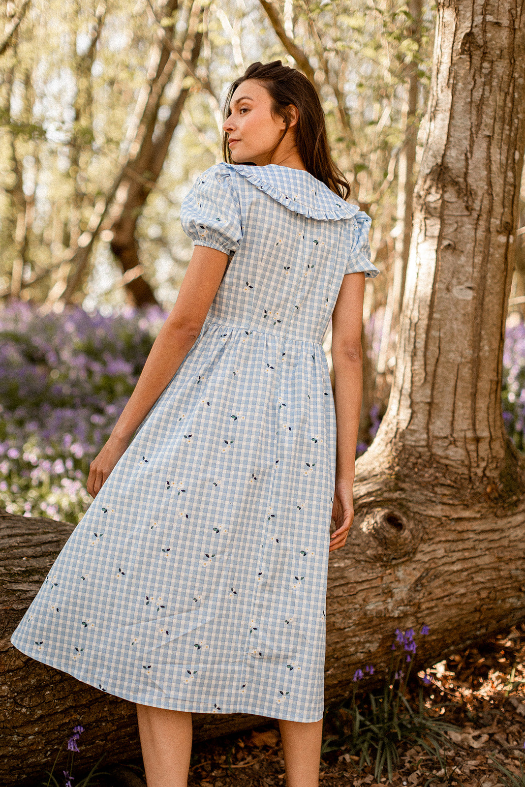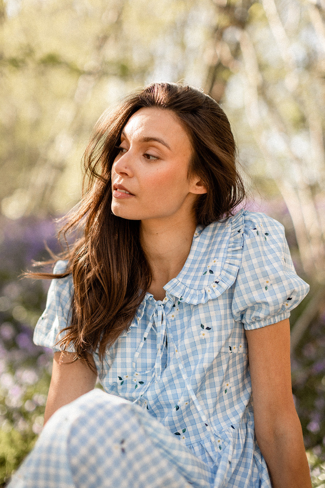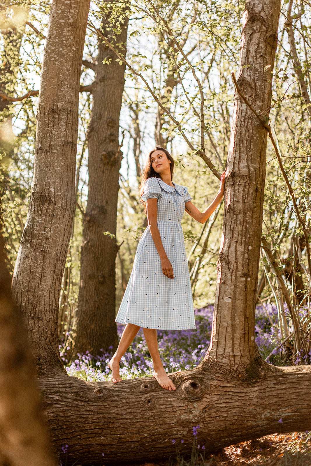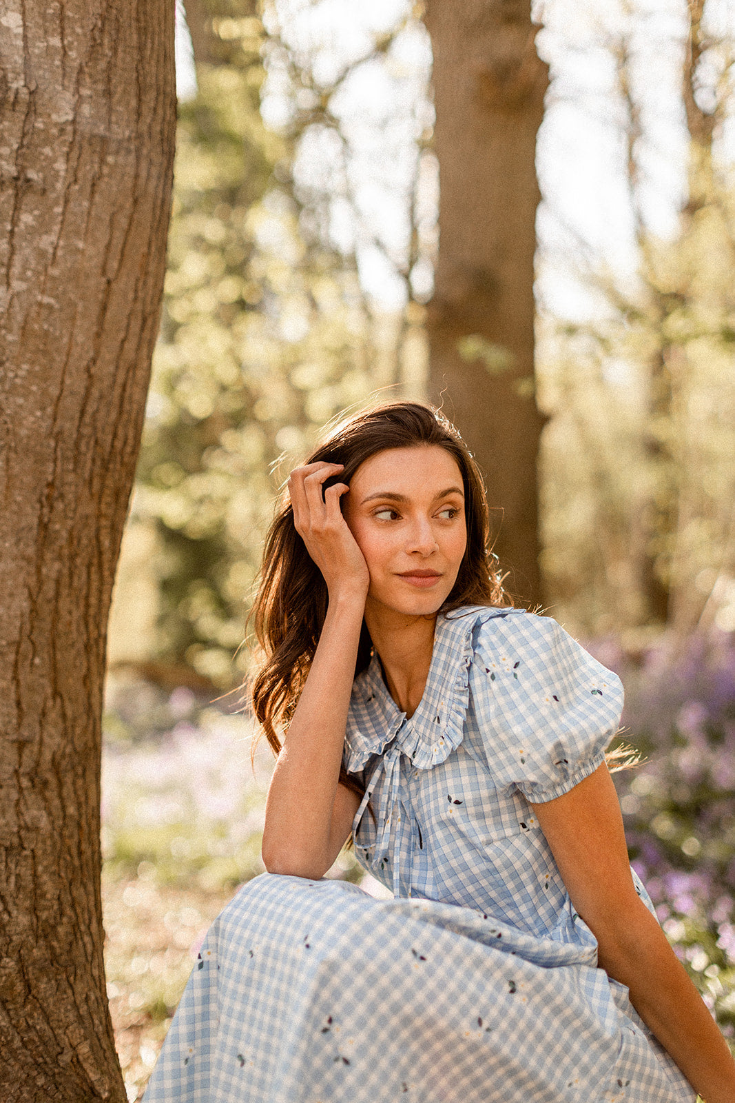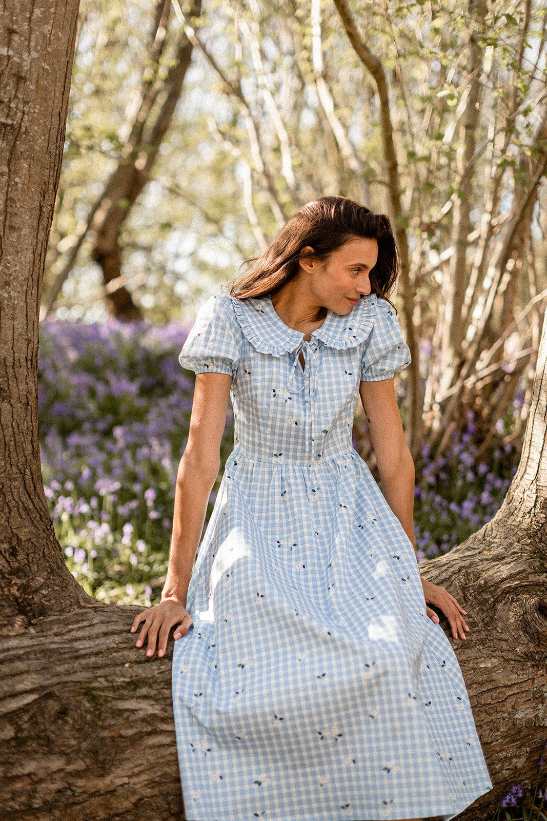 The Hannah is the love child of Alice in Wonderland, Alexa Chung, and a stylish parisian woman. a ruffled collar and delicate daffodil print will make you feel delightfully delightful; ready to frolic through fields or festivals. it gets a second life when the sun goes down and you find yourself looking effortless (and being looked at) in bars you really shouldn’t be at…handmade and printed in the UK on GOTS organic cotton, get ready to tell ladies in the loos that your dress has POCKETS.